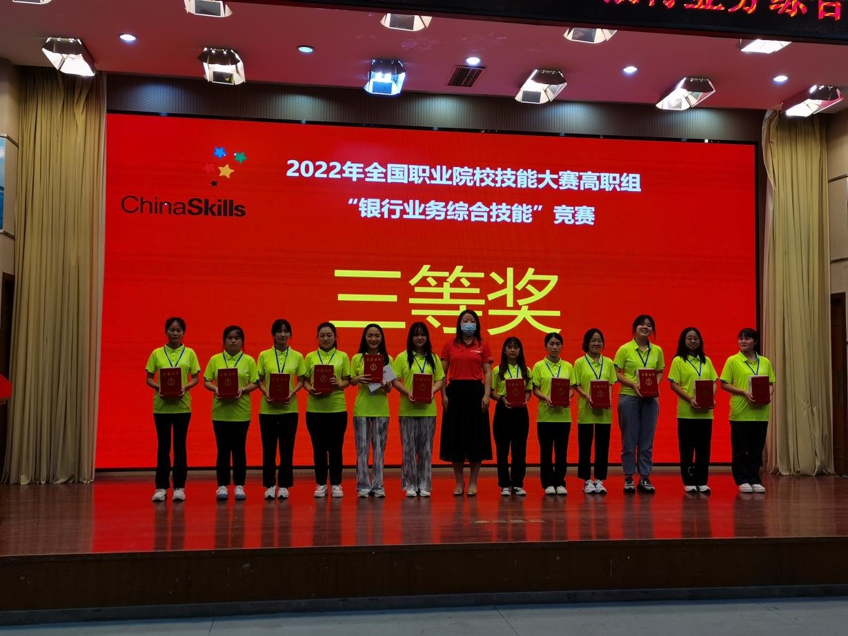 8月14日至15日,2022年全國職業(yè)院校技能大賽“銀行業(yè)務綜合技能”賽項在山東外貿職業(yè)學院舉行,全國共有55支強隊220名選手參賽。經(jīng)過激烈角逐,由財金學院包小群、覃方俊教師指導,財務管理專業(yè)學生周靖虹、賁蘭馨、甘燕華、吳林鳳組成的團隊代表廣西壯族自治區(qū)參賽,榮獲三等獎。
