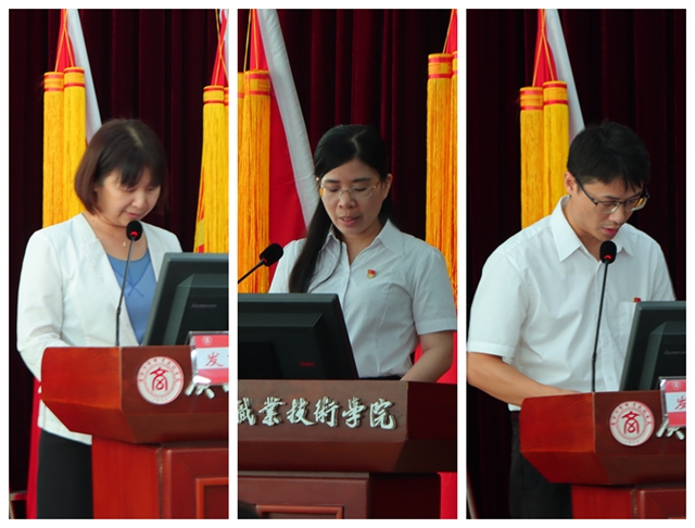 包小群、農(nóng)業(yè)團、粟衛(wèi)紅三位同志作為獲獎代表進行發(fā)言。他們結(jié)合崗位實際,分享了在教書育人、行政管理、思想學習等方面的經(jīng)驗和感悟,彰顯出共產(chǎn)黨員不怕苦累、為民服務(wù)的工作態(tài)度和永葆初心、勇?lián)笕蔚南蠕h本色。