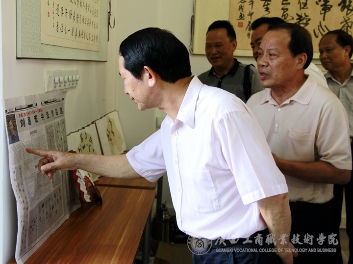 座談會(huì)上,學(xué)院領(lǐng)導(dǎo)先與老領(lǐng)導(dǎo)一同觀看了學(xué)院校慶日宣傳片《校慶日的由來》。隨后覃武云書記向大家介紹與會(huì)人員。陳杰院長(zhǎng)在會(huì)上匯報(bào)學(xué)院有關(guān)工作,原糧食局老領(lǐng)導(dǎo)梁雨祥、自治區(qū)糧食局副局長(zhǎng)林愈溪、陸炳堅(jiān)老院長(zhǎng)、黃永蓬老書記先后發(fā)表講話,感慨學(xué)院從成立至今,歷經(jīng)的風(fēng)風(fēng)雨雨,辛酸往事。經(jīng)過學(xué)院老領(lǐng)導(dǎo)以及現(xiàn)任領(lǐng)導(dǎo)的努力讓得工商學(xué)院騰飛。原糧食局老領(lǐng)導(dǎo)梁雨祥說:“我們現(xiàn)在學(xué)院學(xué)生有大概九千人,所以我們就要把目標(biāo)定在學(xué)院學(xué)生達(dá)到上萬人,這樣學(xué)院才能更加的出眾”。 會(huì)后學(xué)院領(lǐng)導(dǎo)人陪同老領(lǐng)導(dǎo)一起觀摩校友書法演示,參觀糧食文化展以及教學(xué)成果展。