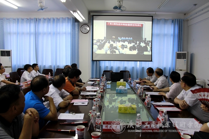 2015年6月26日下午,廣西工商職業(yè)技術(shù)學(xué)院“6.26”校慶座談會(huì)在校本部教學(xué)樓109會(huì)議室召開。原糧食局老領(lǐng)導(dǎo)梁雨祥、自治區(qū)糧食局副局長(zhǎng)林愈溪、原學(xué)院院長(zhǎng)陸炳堅(jiān)、原學(xué)院正處級(jí)調(diào)研員藍(lán)天、原黨委副書記、紀(jì)委書記付春生、原學(xué)院副院長(zhǎng)廖樹霖、原學(xué)院工會(huì)主席韋楊、原學(xué)院副處級(jí)調(diào)研員潘克文、原學(xué)院副處級(jí)調(diào)研員閉慶煊作為校友受邀出席本次座談會(huì)。學(xué)院黨委書記覃武云、學(xué)院院長(zhǎng)、黨委副書記陳杰、黨委副書記、紀(jì)委書記蒙啟成、學(xué)院副院長(zhǎng)李仕欽、學(xué)院副廳級(jí)調(diào)研員黃永蓬以及學(xué)院師生代表也參加了本次座談。座談會(huì)由覃武云書記主持。