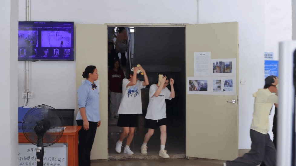 隨著演練警鈴響起,防震疏散演練正式開始。全體學(xué)生立即停止活動(dòng),就近在桌椅邊、床邊或內(nèi)墻角處就地蹲下,原地等待廣播疏散指令,真實(shí)模擬地震發(fā)生時(shí)的場(chǎng)景。各崗位值守的安全管理員和老師們緊急疏導(dǎo),指揮學(xué)生有秩序出宿舍、教室,按照預(yù)定的應(yīng)急疏散通道迅速、有序疏散撤離到空曠場(chǎng)地。安全到達(dá)目的地后,老師隨即清點(diǎn)人數(shù),報(bào)告到指揮處,整個(gè)疏散演練安全、快速、有序地完成,充分體現(xiàn)了學(xué)校師生對(duì)于安全問題的重視和團(tuán)隊(duì)協(xié)作的精神。