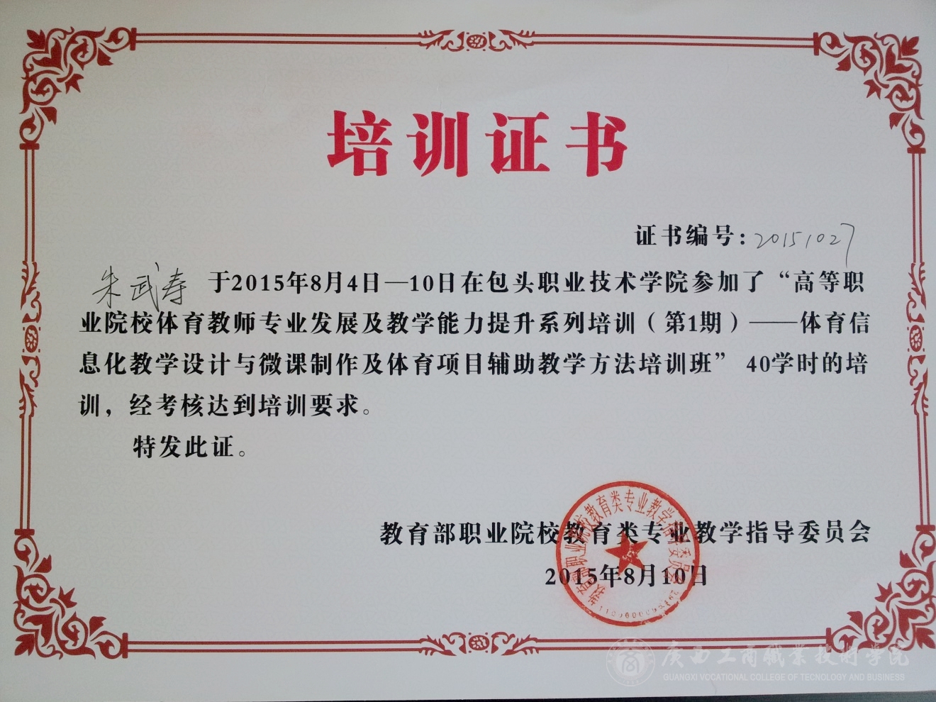 2015年8月4—10日,教育部職業(yè)院校教育類專業(yè)教學指導委員會在內(nèi)蒙古包頭市舉辦2015年全國高等職業(yè)院校體育教師專業(yè)發(fā)展及教學能力提升系列培訓(第一期)——體育信息化教學設(shè)計與微課制作及體育項目輔助教學方法培訓班。