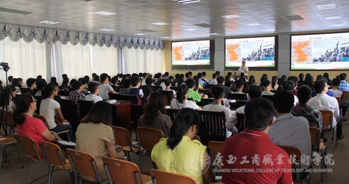 2015年9月14日下午,學(xué)院院長(zhǎng)陳杰教授的第一堂思想政治理論課暨院長(zhǎng)公開課在2214視頻會(huì)議室進(jìn)行。學(xué)院黨委覃武云書記、蒙啟成副書記、李維副院長(zhǎng)、韋勝強(qiáng)處長(zhǎng)、各系部領(lǐng)導(dǎo)、各專業(yè)負(fù)責(zé)人以及社科部全體教師和營(yíng)策1502、物流1503、工商1507班全體同學(xué)聆聽了本次公開課。