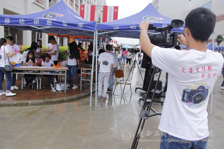 2015年9月21日上午,秋風(fēng)細(xì)雨,擋不住新聞中心同學(xué)們的熱情,學(xué)院黨委宣傳部新聞中心學(xué)生部冒雨在院本部丁字路口開展了2015級(jí)招新活動(dòng)。