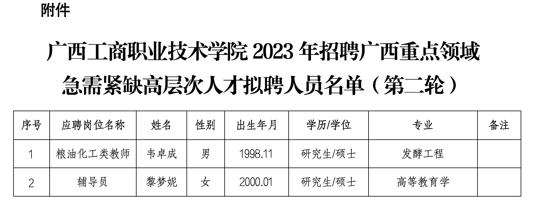 附件:廣西工商職業(yè)技術(shù)學(xué)院2023年廣西重點(diǎn)領(lǐng)域急需緊缺高層次人才招聘擬聘人員名單(第二輪)