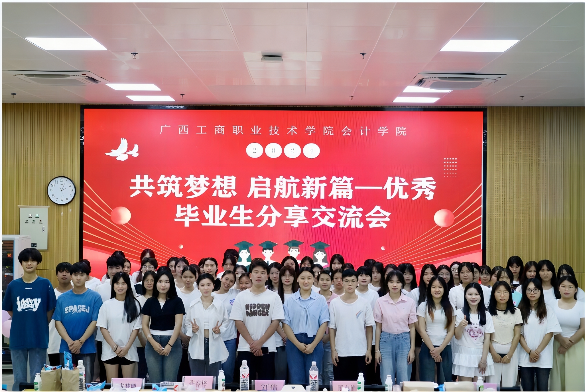 會上,會計(jì)學(xué)院團(tuán)委副書記劉倩老師首先進(jìn)行致辭,表達(dá)了對畢業(yè)生們的熱烈祝賀與真誠祝福,學(xué)海無涯,希望大家永不停止學(xué)習(xí)的腳步,珍惜在人生道路上的點(diǎn)滴,為社會作貢獻(xiàn),實(shí)現(xiàn)人生價(jià)值。接著,三位優(yōu)秀畢業(yè)生依次進(jìn)行經(jīng)驗(yàn)分享,在發(fā)言過程中,學(xué)長學(xué)姐們分享了自己大學(xué)期間的學(xué)習(xí)經(jīng)歷與外出實(shí)習(xí)工作經(jīng)驗(yàn)。經(jīng)驗(yàn)分享環(huán)節(jié)結(jié)束后,臺下同學(xué)就自己所面臨的問題和困惑向?qū)W姐學(xué)長們提問,三位學(xué)長學(xué)姐根據(jù)問題情況進(jìn)行實(shí)際分析作了客觀、詳細(xì)的解答。