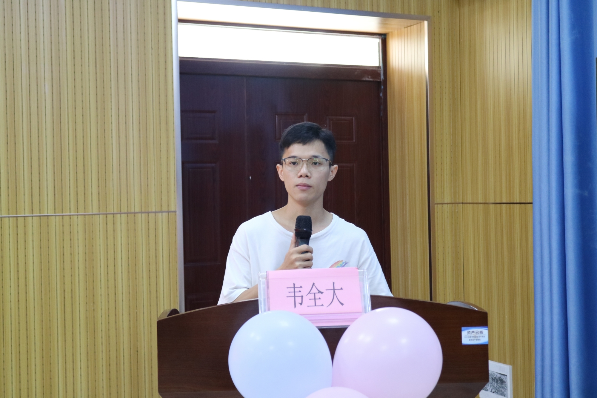 圖為: 會計(jì)學(xué)院第十七屆團(tuán)委學(xué)生副書記韋全大同學(xué)發(fā)言