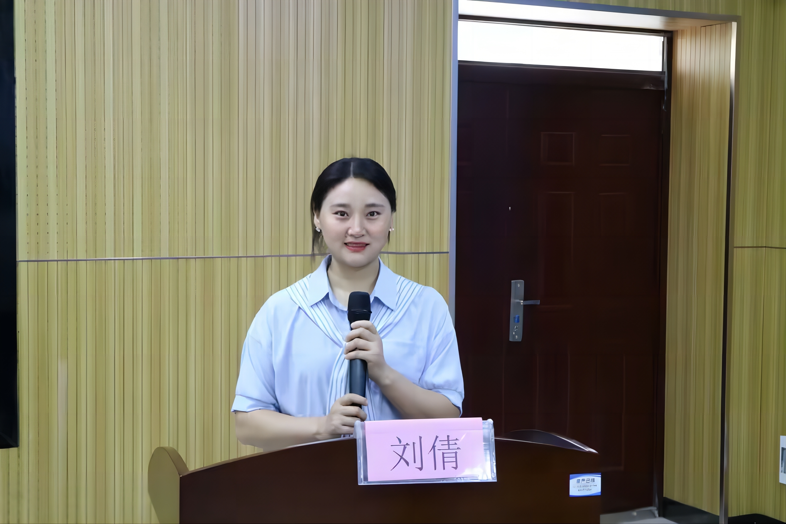 圖為: 會計學(xué)院團(tuán)委副書記劉倩老師講話