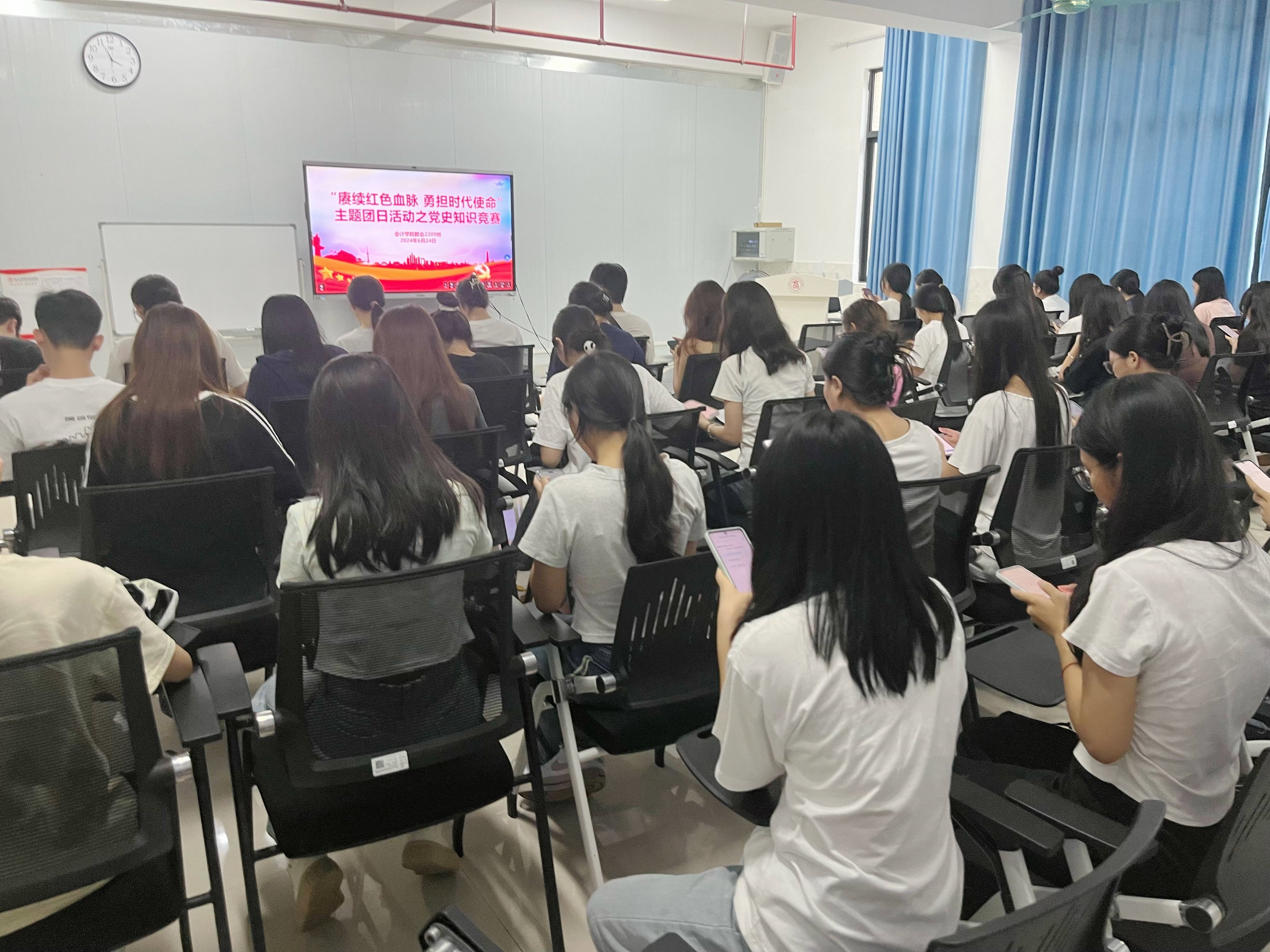2024年6月24日,在A5-203同學(xué)們采用學(xué)習(xí)通答題的方式開展黨史知識競賽,促進(jìn)團(tuán)員青年進(jìn)一步學(xué)習(xí)黨史知識,深化青年學(xué)生對黨史的理解與認(rèn)識。