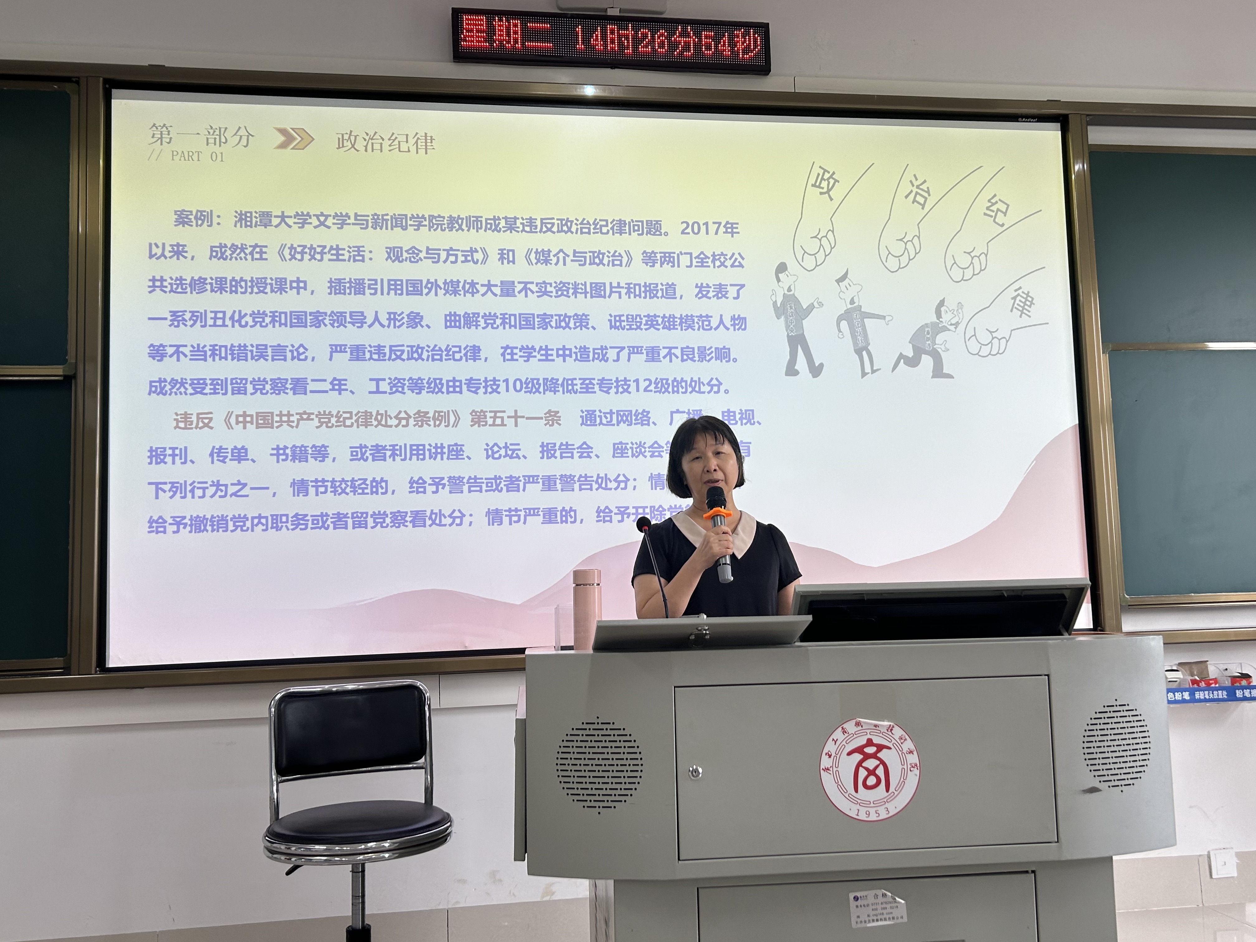 為推動黨紀(jì)學(xué)習(xí)教育走深走實 ,深入學(xué)習(xí)貫徹習(xí)近平總書記關(guān)于黨紀(jì)學(xué)習(xí)教育的重要講話和重要指示精神,認(rèn)真貫徹落實黨中央、自治區(qū)黨委、學(xué)校黨委關(guān)于黨紀(jì)學(xué)習(xí)教育的有關(guān)工作部署要求,慶祝中國共產(chǎn)黨成立103周年,6月25日下午,由會計學(xué)院黨總支書記粟衛(wèi)紅在A1-302作題為《嚴(yán)守六項紀(jì)律 筑牢紀(jì)律防線》紀(jì)律黨課,全體教師黨員參與。