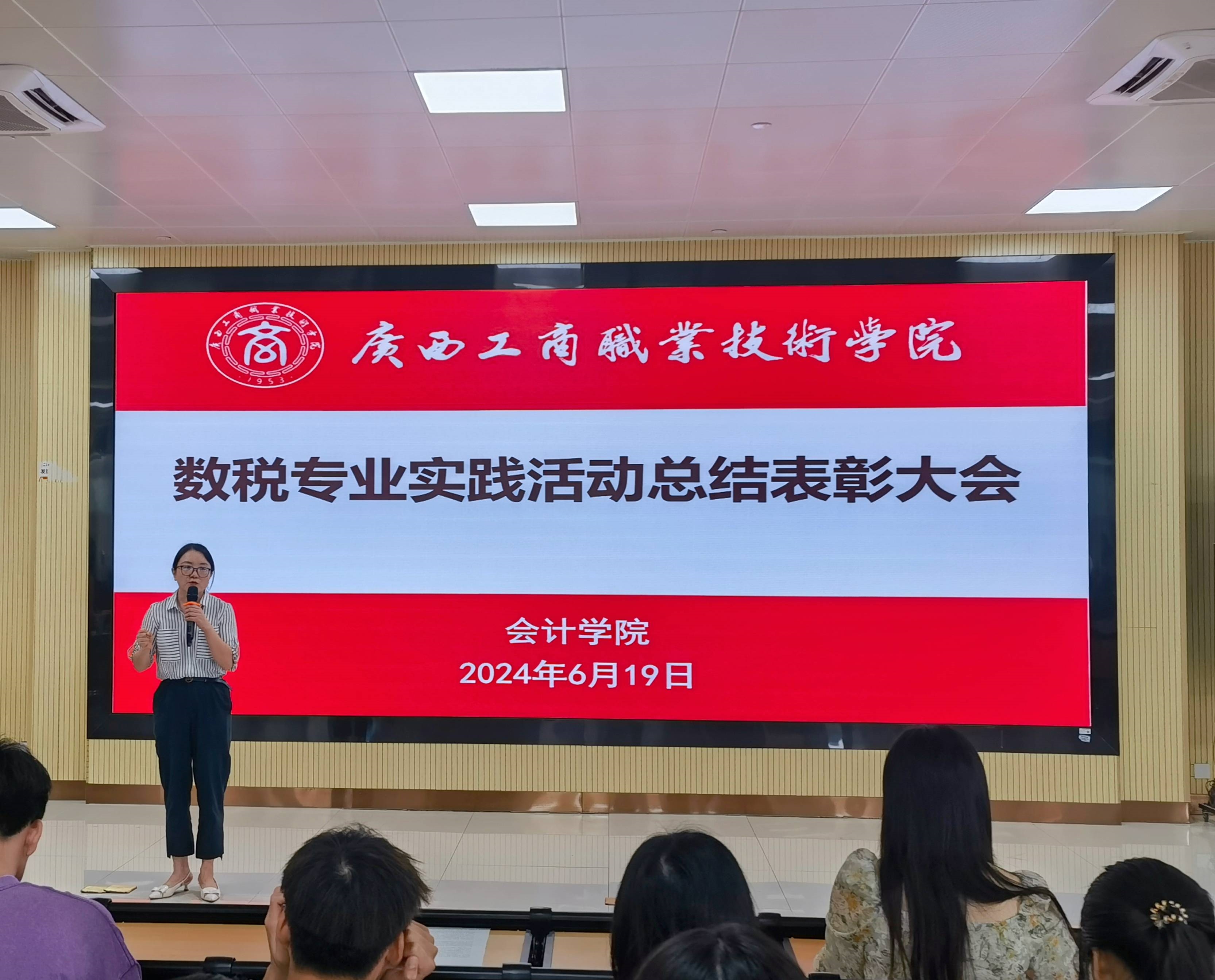 會(huì)計(jì)學(xué)院2023-2024學(xué)年第二學(xué)期財(cái)稅大數(shù)據(jù)應(yīng)用專業(yè)實(shí)踐活動(dòng)已順利告一段落,為總結(jié)經(jīng)驗(yàn)以及表彰先進(jìn),樹(shù)立楷模,讓同學(xué)們更好的領(lǐng)會(huì)此次專業(yè)實(shí)踐活動(dòng)的重要意義,2024年6月19日,會(huì)計(jì)學(xué)院在武鳴校區(qū)A3-101階梯教室召開(kāi)實(shí)踐活動(dòng)總結(jié)表彰大會(huì)。此次會(huì)議由黃穎老師主持,與會(huì)人員有會(huì)計(jì)學(xué)院教學(xué)副院長(zhǎng)譚玉娥、教務(wù)科科長(zhǎng)梁亞兵、教學(xué)秘書(shū)梁月華以及2022級(jí)財(cái)稅大數(shù)據(jù)應(yīng)用專業(yè)全體在校學(xué)生。