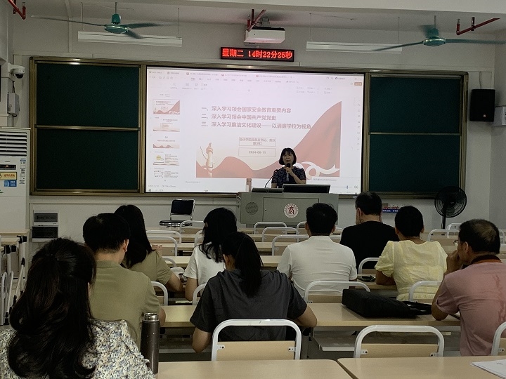 2024年6月11日下午,會(huì)計(jì)學(xué)院黨總支在A2-301組織專題政治理論學(xué)習(xí)會(huì),學(xué)習(xí)內(nèi)容涵蓋了國家安全教育、中國共產(chǎn)黨黨史以及廉潔文化建設(shè)三個(gè)重要領(lǐng)域,旨在提升學(xué)院教師們的思想政治素養(yǎng)和理論水平。本次學(xué)習(xí)會(huì)由會(huì)計(jì)學(xué)院黨總支書記、院長(zhǎng)粟衛(wèi)紅主持,學(xué)院全體教師參加。
