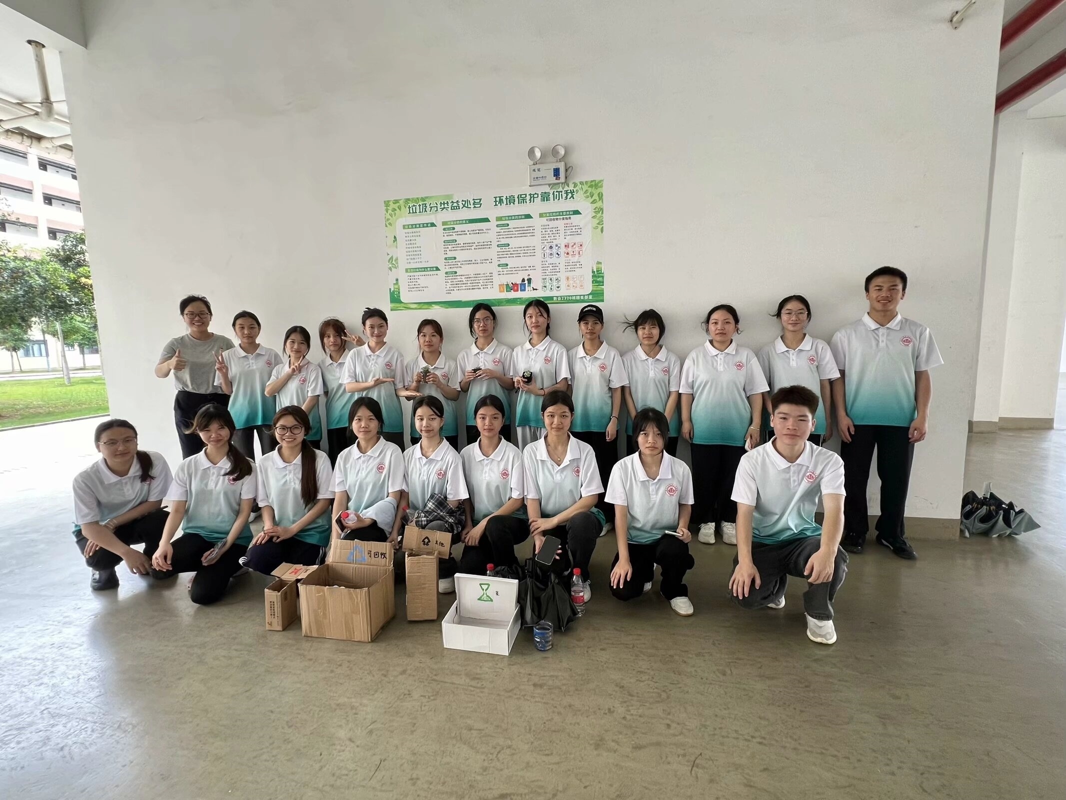 圖為: 活動(dòng)學(xué)生(活動(dòng)成果:宣傳海報(bào)、手工品)合影