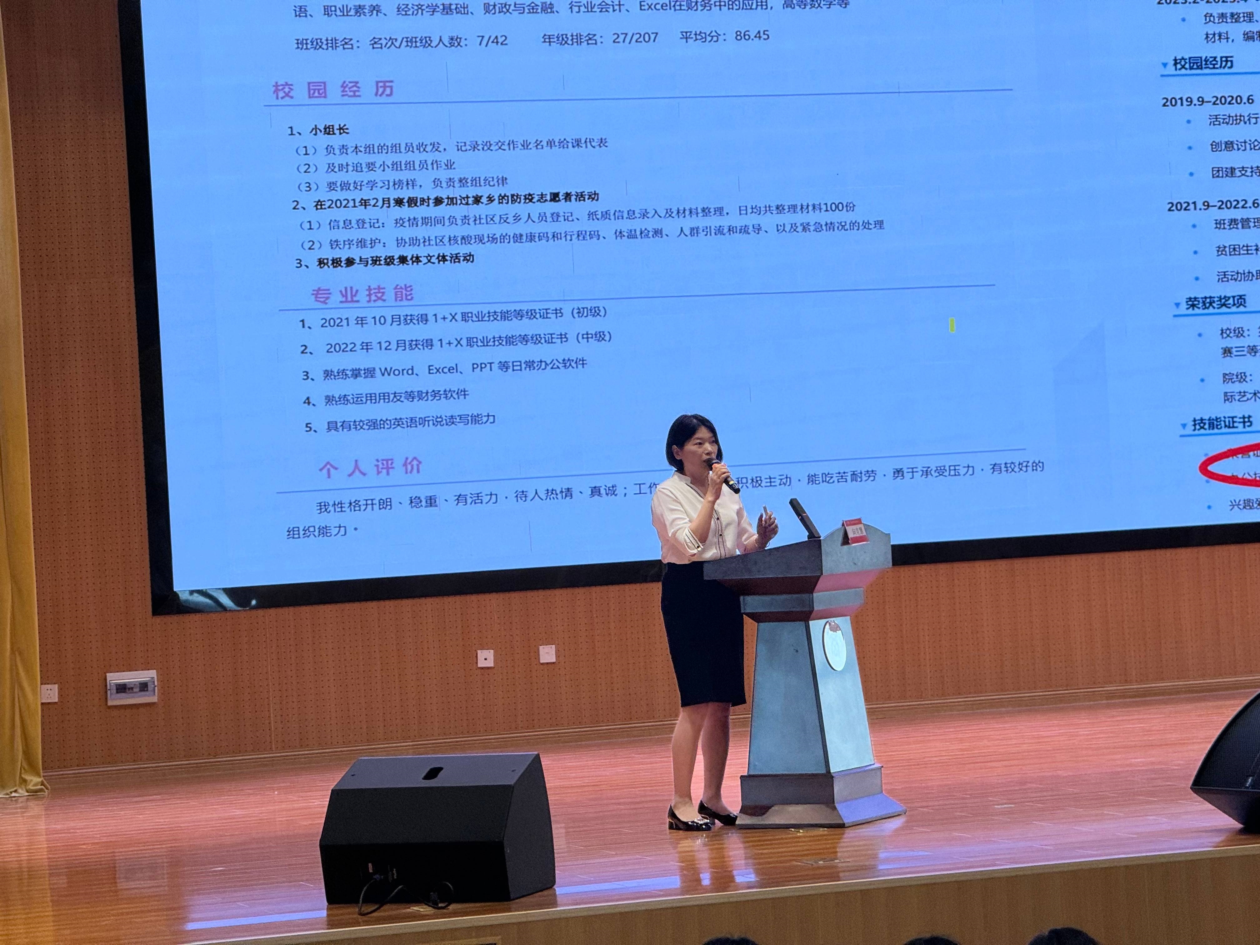 最后,校企合作企業(yè)代表進(jìn)行了實(shí)習(xí)招聘宣講,詳細(xì)介紹了公司的發(fā)展歷程、業(yè)務(wù)范圍及崗位需求等信息,為學(xué)生們提供了豐富的實(shí)習(xí)與就業(yè)機(jī)會(huì)。學(xué)生們積極參與互動(dòng),對(duì)未來的職業(yè)發(fā)展充滿期待。同時(shí)企業(yè)也邀請(qǐng)了會(huì)計(jì)學(xué)院優(yōu)秀畢業(yè)生上臺(tái)做經(jīng)驗(yàn)分享,分享了自己的求職經(jīng)驗(yàn)以及工作經(jīng)驗(yàn),同學(xué)們深受啟發(fā)。