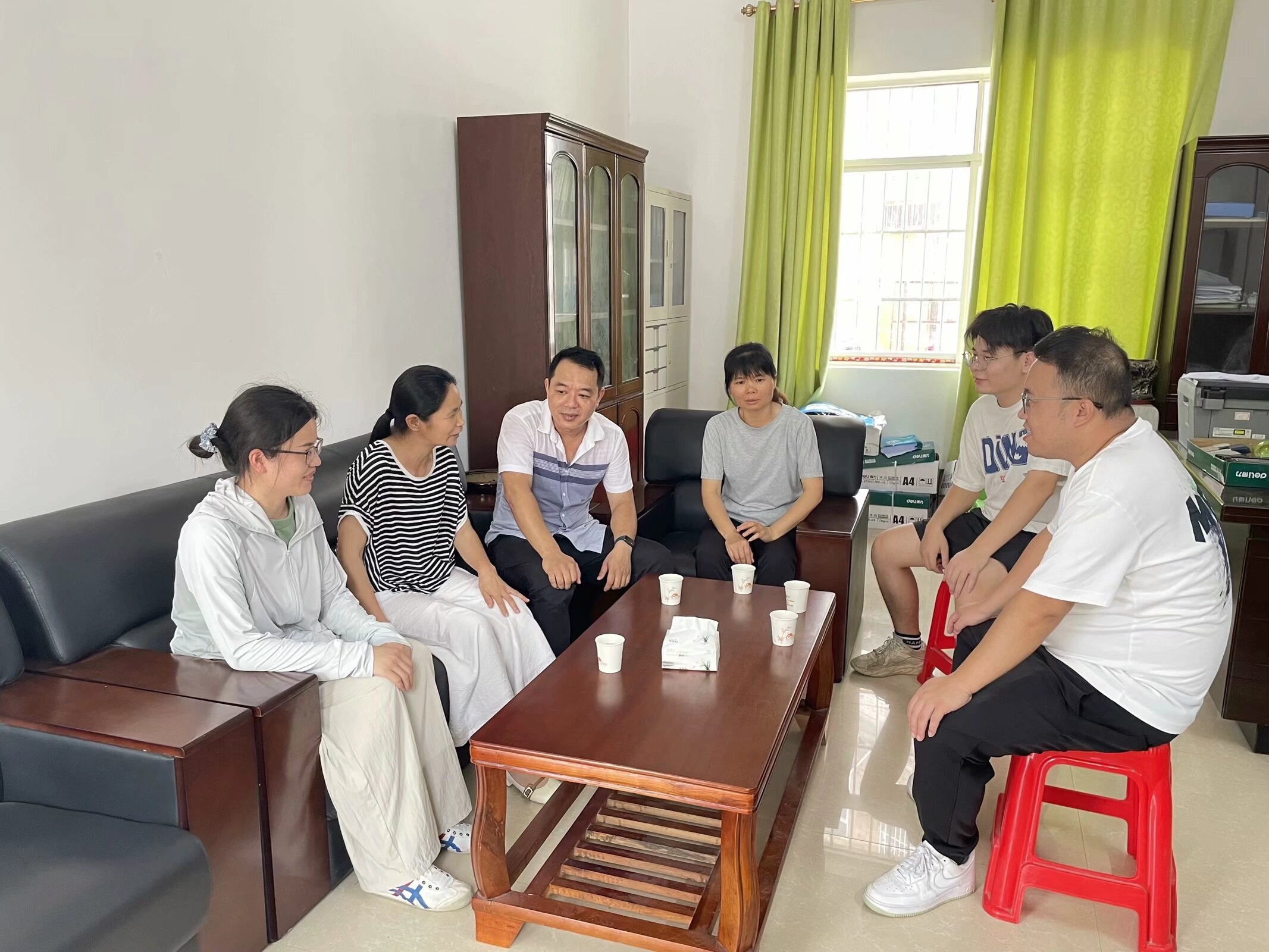 (圖1 李朝鋒書記一行與靖西小學羅梅校長了解防溺水教育情況)