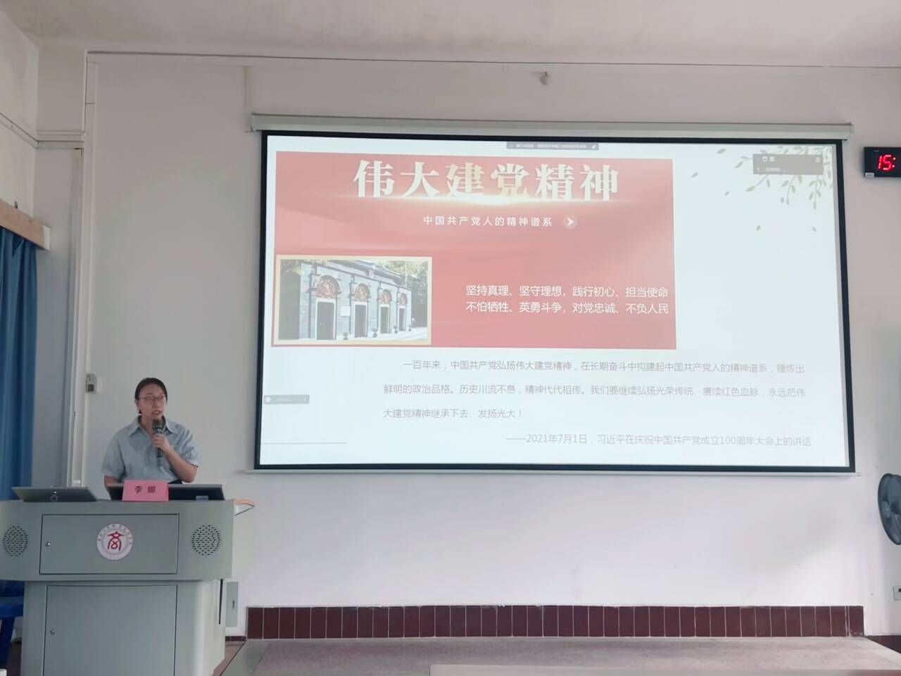 圖2:李娜同志給同學(xué)們講解偉大建黨精神