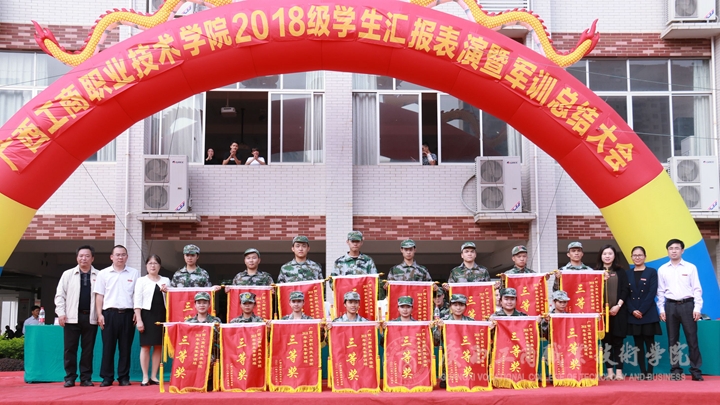 列隊檢閱完畢,陳宗沛大隊長宣讀學(xué)院2018級學(xué)生軍訓(xùn)會操評比獲獎名單。李維副院長、陳宗沛大隊長以及各系部主任分別為軍訓(xùn)獲獎班級頒發(fā)錦旗。緊接著教官向全體師生展示了列隊、擒拿格斗中的倒功和軍體拳等表演。教官們動作整齊,雄姿英發(fā),軍體拳聲聲有力,精彩的摔擒表演更是博得滿場喝彩。