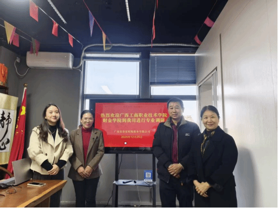 為響應(yīng)國家深化產(chǎn)教融合戰(zhàn)略部署,推動職業(yè)教育與區(qū)域產(chǎn)業(yè)協(xié)同發(fā)展,2025年12月25日,廣西工商職業(yè)技術(shù)學(xué)院財金學(xué)院粟衛(wèi)紅院長、大數(shù)據(jù)與財務(wù)管理專業(yè)帶頭人文玉蘭及骨干教師雷英一行前往廣西老管家財稅服務(wù)有限公司進行合作洽談。雙方圍繞“共構(gòu)課程體系、共建雙師團隊、共享實踐資源、共研技術(shù)項目、共促學(xué)生就業(yè)等多個維度達成初步意向。