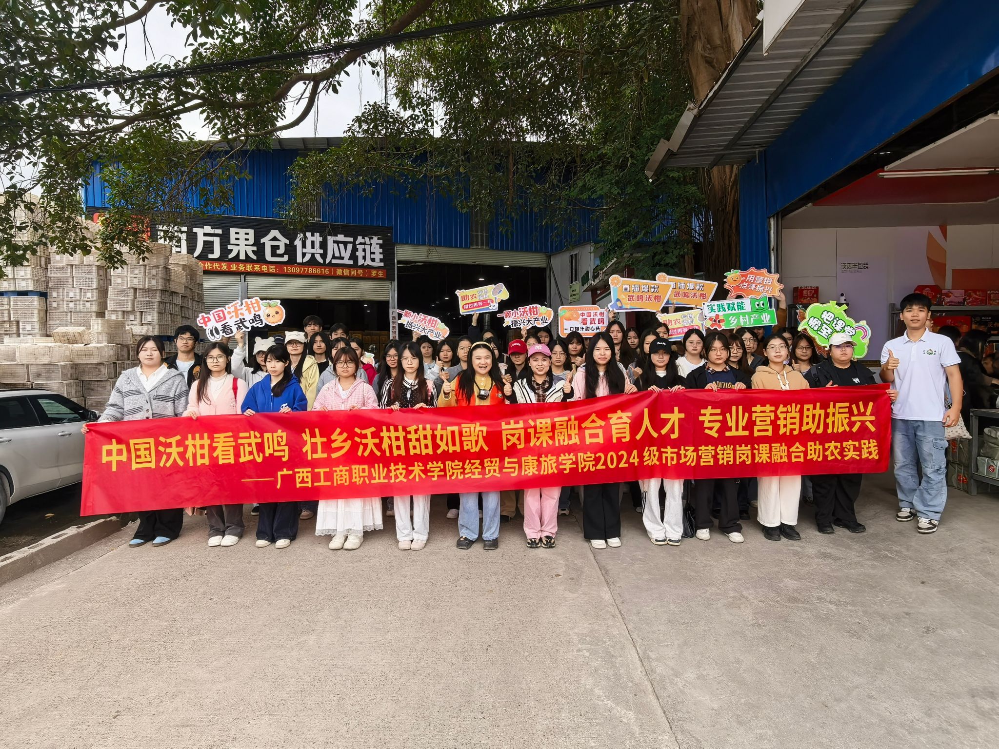 為深化崗課融合育人模式,將課堂理論與行業(yè)實踐深度融合,切實提升市場營銷專業(yè)學生的實踐應用能力,12月23日,經(jīng)貿(mào)與康旅學院市場營銷專業(yè)教師帶領2024級市場營銷專業(yè)5個班級學生前往南寧武鳴區(qū)沃柑果園基地開展實地調(diào)研,沉浸式探尋沃柑產(chǎn)業(yè)發(fā)展密碼。本次活動是2024級市場營銷專業(yè)《崗課融合實踐》課程的重要教學環(huán)節(jié),旨在通過真實產(chǎn)業(yè)場景,提升學生市場調(diào)研、內(nèi)容創(chuàng)作與營銷策劃能力。