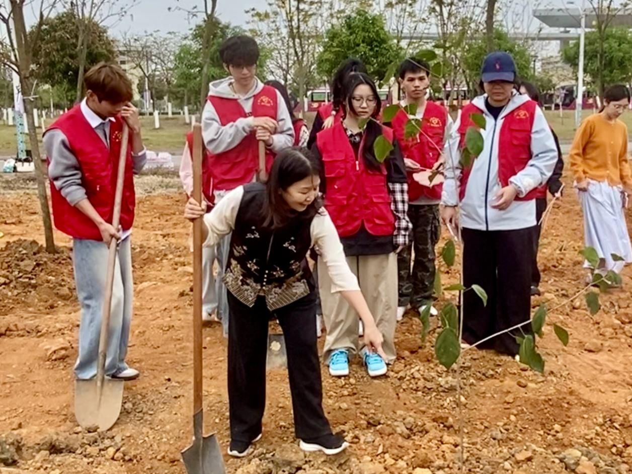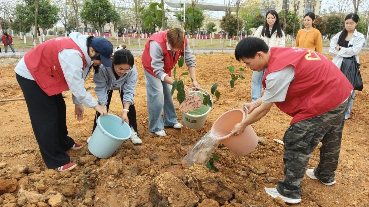 春風(fēng)吐綠,草木初萌,正是播綠好時(shí)節(jié)。3月18日,財(cái)金學(xué)院在武鳴校區(qū)組織開(kāi)展“精算綠色未來(lái) 共植財(cái)金金樹(shù)”植樹(shù)實(shí)踐活動(dòng),學(xué)院院長(zhǎng)粟衛(wèi)紅、黨總支書(shū)記譚序光帶領(lǐng)教師代表與學(xué)生代表共同參與此次活動(dòng),以躬身實(shí)踐為春日校園添綠,用財(cái)金智慧澆灌綠色希望。