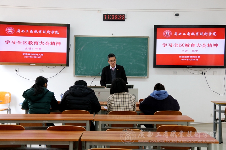 • 2019年2月25日上午,學(xué)院黨委宣傳部黨支部在校本部2224教室集體學(xué)習(xí)全區(qū)教育大會(huì)精神。本次會(huì)議由黨委宣傳部副部長林雯同志主持。會(huì)上,林副部長圍繞“深入學(xué)習(xí)習(xí)近平總書記關(guān)于教育的重要論述,貫徹落實(shí)全區(qū)教育...