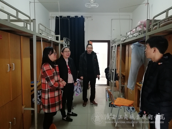 • ? ? ? ? ?2月24日上午,新學(xué)期開學(xué)伊始,學(xué)院副院長陳寧春深入學(xué)生公寓檢查指導(dǎo)宿舍衛(wèi)生安全工作,走訪慰問新學(xué)期返校學(xué)生。學(xué)工部部長助理黃旭艷,會(huì)計(jì)系學(xué)工副主任張宇斐、宿管科李金霖、練東曦、輔導(dǎo)員曾昭婷...