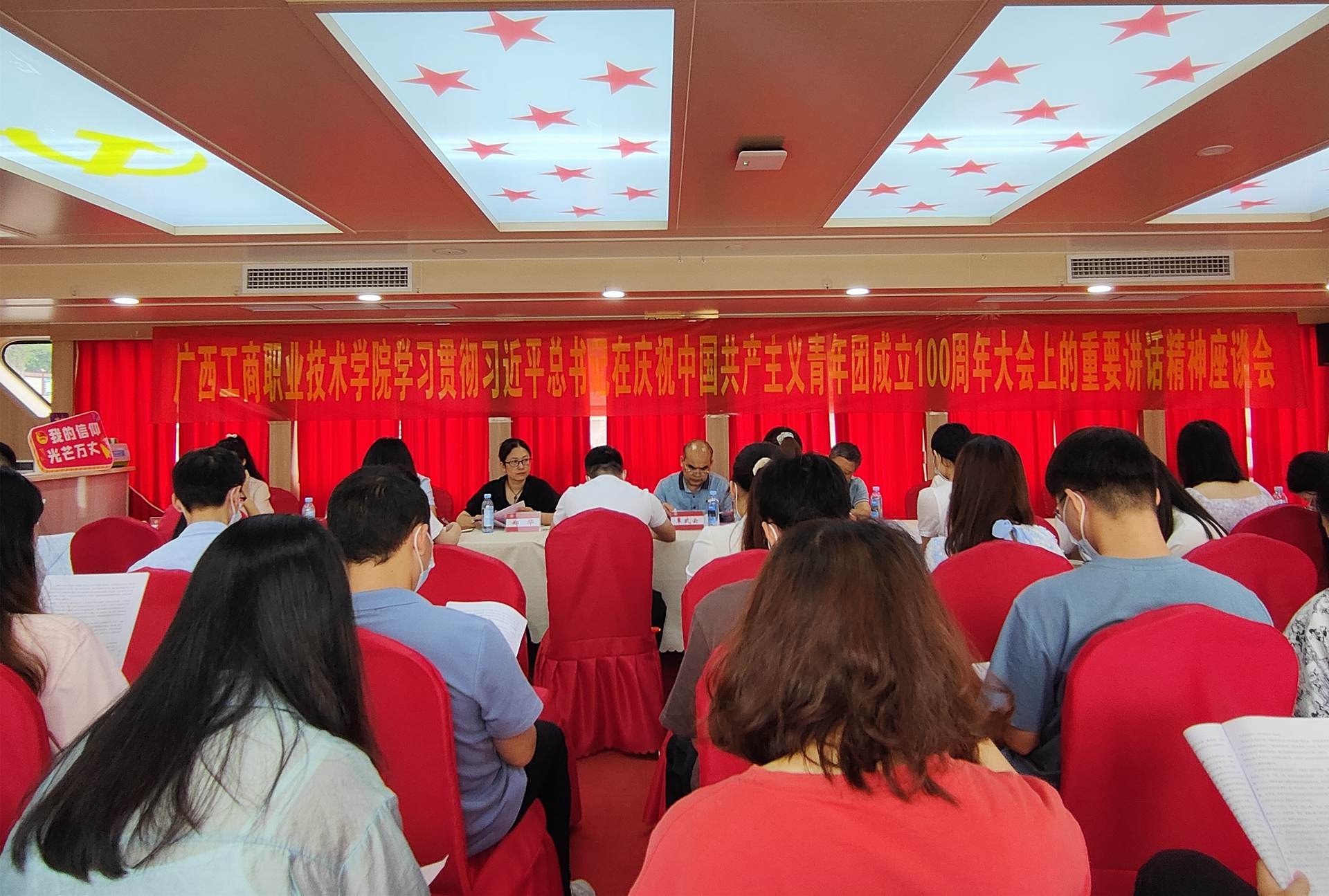 • 5月20日下午,我院在南寧市邕江紅色主題游船召開(kāi)學(xué)習(xí)貫徹習(xí)近平總書(shū)記在慶祝中國(guó)共產(chǎn)主義青年團(tuán)成立100周年大會(huì)上的重要講話(huà)精神座談會(huì),深入學(xué)習(xí)貫徹習(xí)近平總書(shū)記重要講話(huà)精神。學(xué)院黨委書(shū)記覃武云、學(xué)院副院長(zhǎng)...
