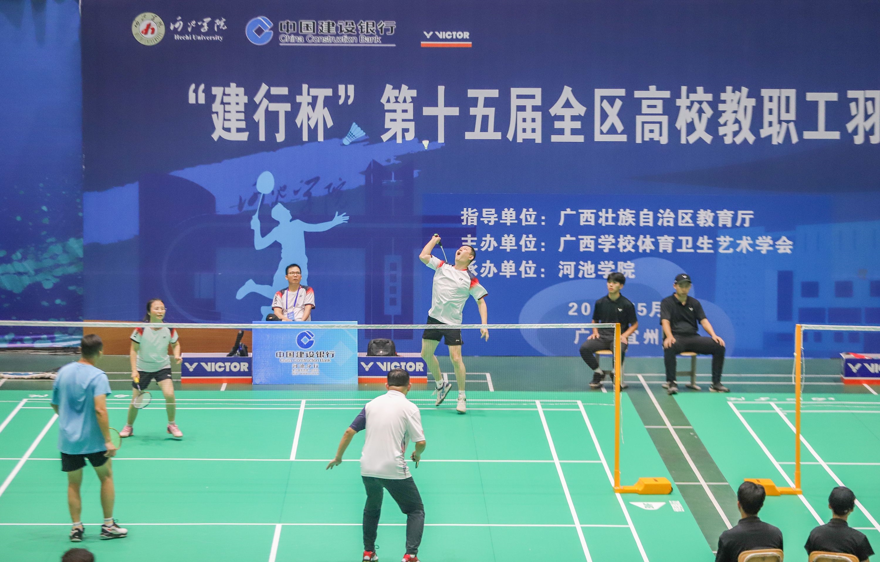 • 廣西“建行杯”第十五屆全區(qū)高校教職工羽毛球比賽于5月29-30日在河池學院火熱開戰(zhàn),比賽吸引了來自全區(qū)各高校的教職工羽毛球愛好者們踴躍參與,我校由副校長陳寧春率隊參賽。(比賽現(xiàn)場)其中由陳寧春副校長、紀...