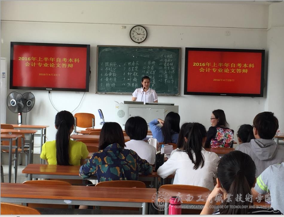 • 2016年4月22日下午及4月23日,繼續(xù)教育部在我院本部(鵬飛校區(qū))第二教學(xué)樓開(kāi)展2016年上半年自考專本銜接考生畢業(yè)論文答辯工作。此次畢業(yè)答辯涉及就讀主考學(xué)校為廣西財(cái)經(jīng)學(xué)院自考本科的會(huì)計(jì)學(xué)專業(yè)、工商管理專業(yè)...
