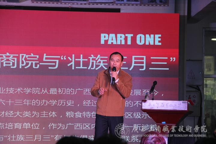 • 2017年3月28日,我院在學(xué)院校本部文體館一樓舉辦廣商院“壯族三月三”民族文化教育活動(dòng)日,學(xué)院黨委副書(shū)記蒙啟成出席活動(dòng),他不僅現(xiàn)場(chǎng)作精彩有趣的“三月三”專題講座,講起了故事,還唱起了山歌。學(xué)院各部門老師...
