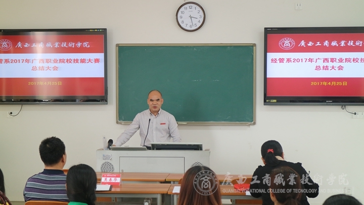 • ? ? ? ? 2017年4月25日,經(jīng)管系在校本部召開2017年廣西職業(yè)院校技能大賽總結(jié)大會。學(xué)院黨委書記覃武云同志出席本次總結(jié)大會,系主任譚波教授主持會議,經(jīng)管系全體教師參會。? ? ? ? 首先,譚波主任介紹經(jīng)管系今年...