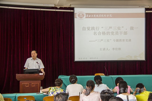 • ??????? 2015年5月28日下午,由李仕欽副院長主講的《自覺踐行“三嚴三實”做一名合格的黨員干部》“三嚴三實”專題教育黨課在我院校本部2145報告廳開講,學院各部門的相關(guān)負責人代表當場聽課。??????? 李仕欽副院...
