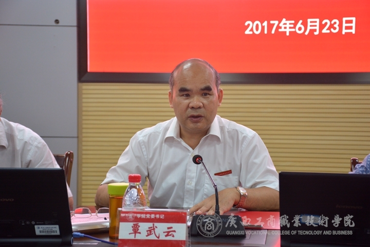 • 6月30日上午,我院在校本部教學(xué)樓視頻會(huì)議室召開推進(jìn)“兩學(xué)一做”學(xué)習(xí)教育常態(tài)化制度化工作座談會(huì)。學(xué)院黨委書記覃武云、院長(zhǎng)、黨委副書記陳杰、黨委副書記、紀(jì)委書記蒙啟成、副院長(zhǎng)李維、副院長(zhǎng)陳寧春出席會(huì)議,...