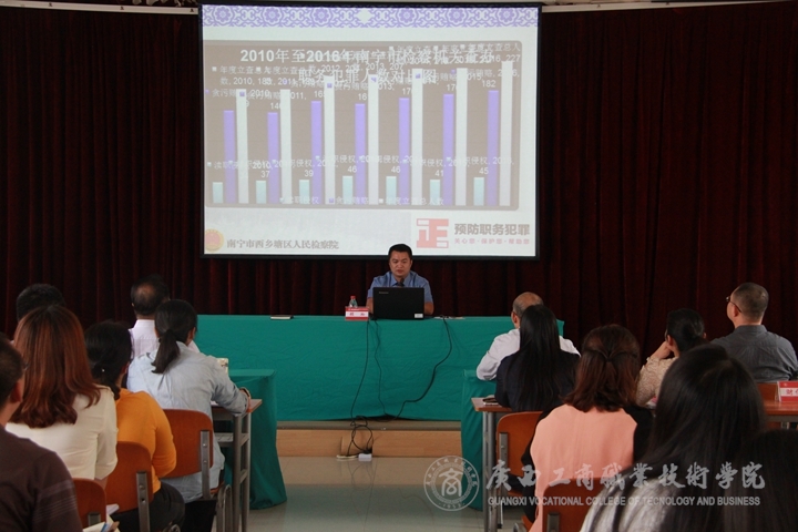 • 按照學院以案明紀工作部署和要求,為提高全體教職員工法律意識,加強預防犯罪能力,2017年10月24日15時,我院在校本部報告廳舉辦了“高校如何預防職務(wù)犯罪”主題講座,邀請了南寧市西鄉(xiāng)塘區(qū)人民檢察院反貪污賄賂...
