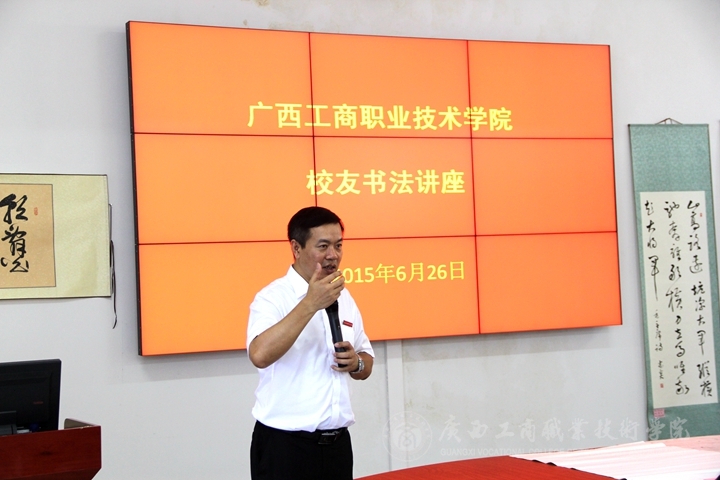 • 2015年6月26日下午,我院在校本部教學樓2514創(chuàng)業(yè)實訓中心召開校慶日校友書法講座。原財會792班校友、中國書法家協(xié)會理事、廣西書法家協(xié)會常務副主席劉德宏,原計統(tǒng)821班校友,自治區(qū)糧食局人事處處長韋尚英,學院...
