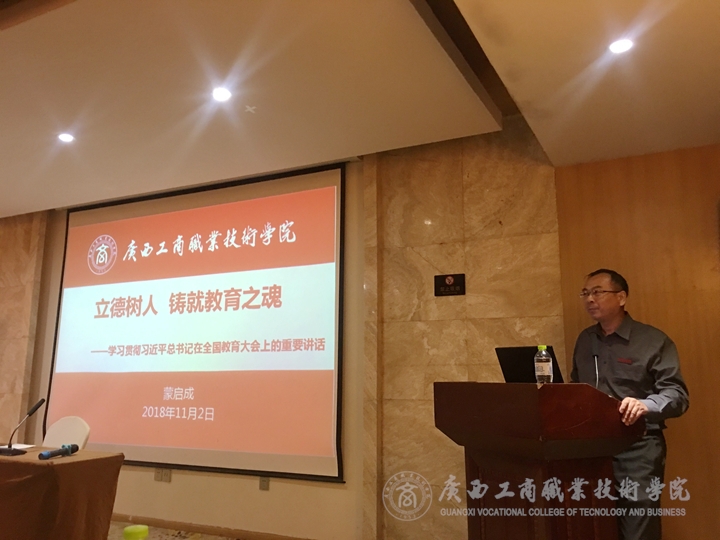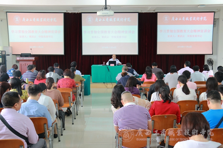 • 11月6日下午,學(xué)院于鵬飛校區(qū)報告廳召開學(xué)習(xí)貫徹全國教育大會精神宣講會。學(xué)院全體教師(含“雙肩挑”教師)、各系學(xué)生代表參加宣講會。本次宣講會由學(xué)院黨委書記覃武云主講。覃武云書記從全國教育大會的背景展開...